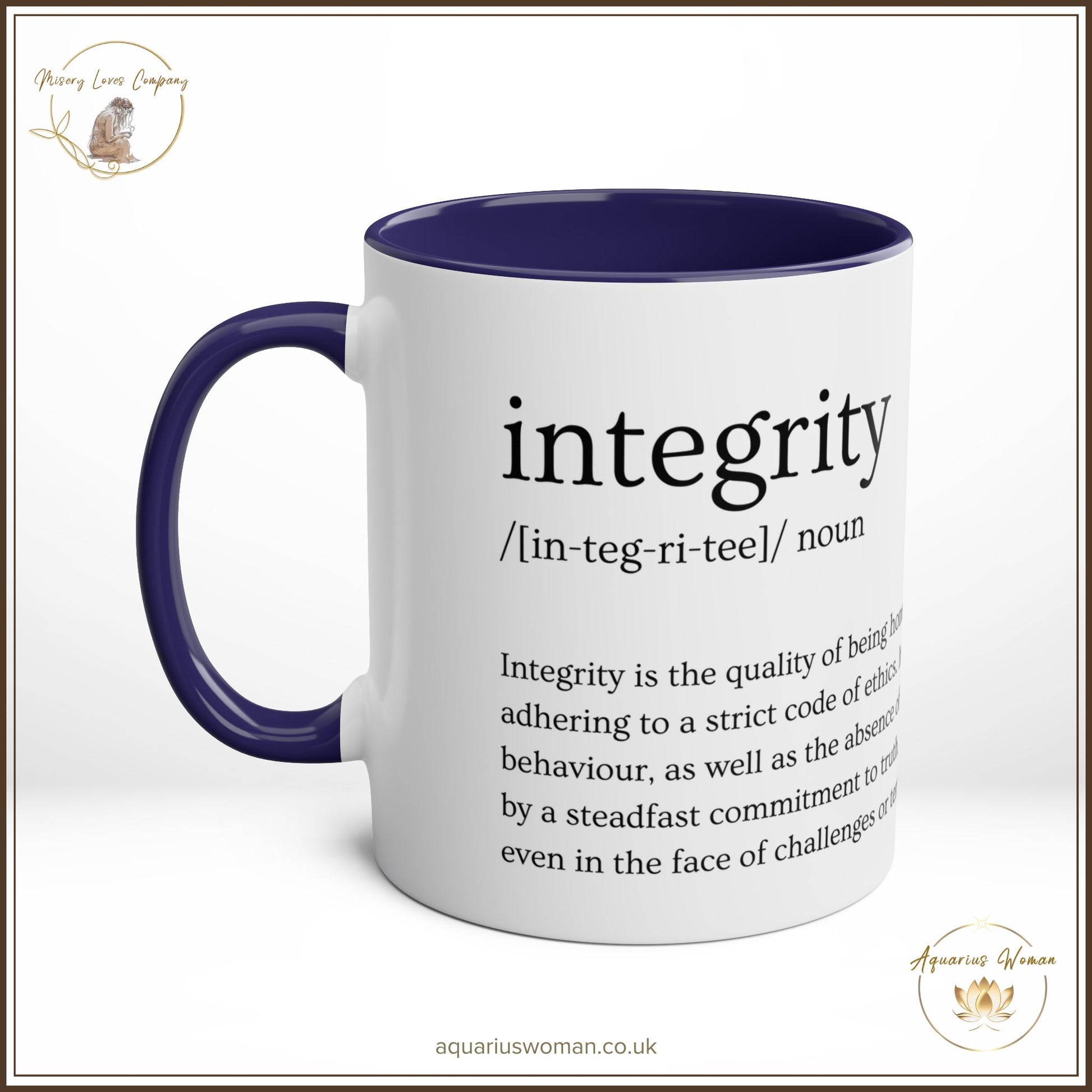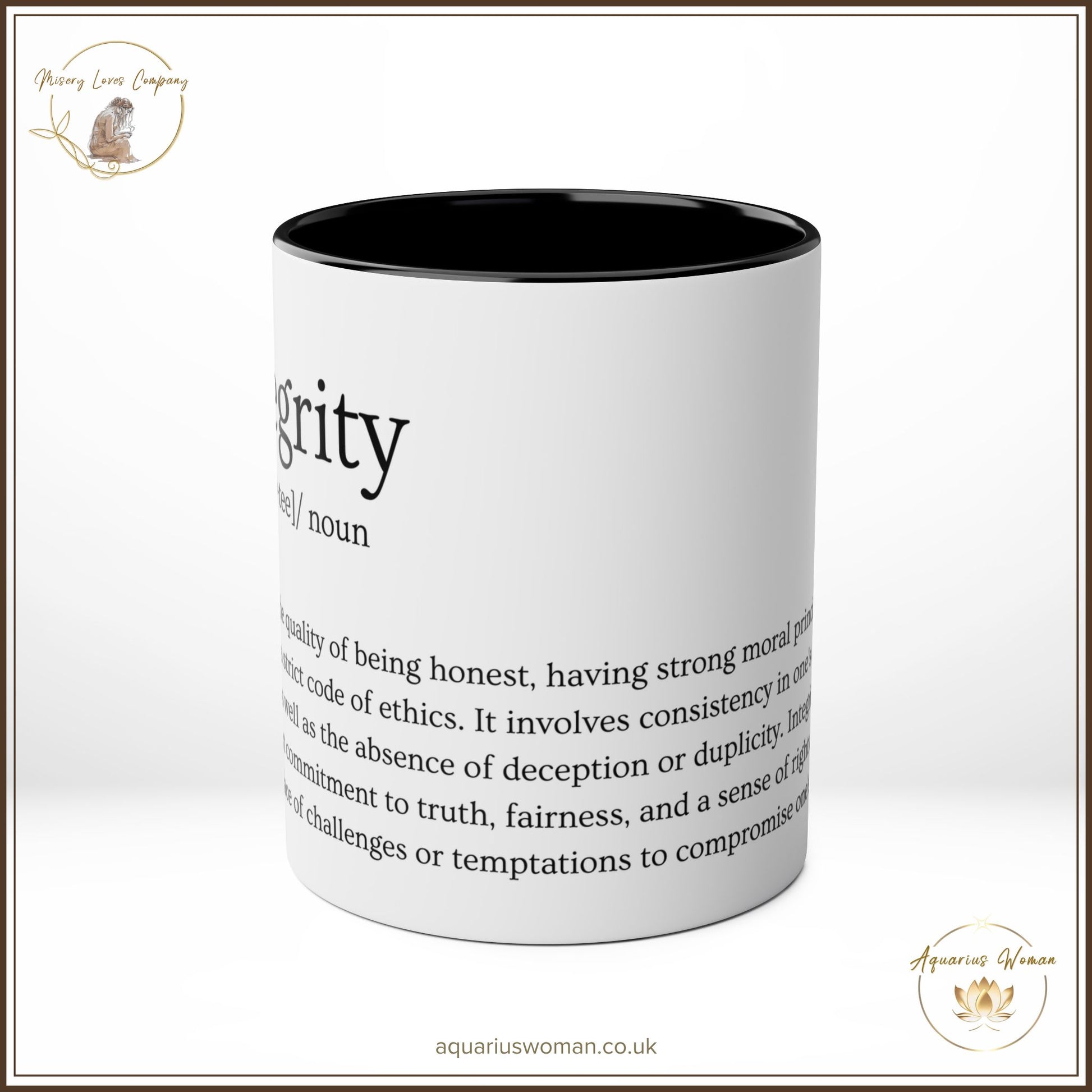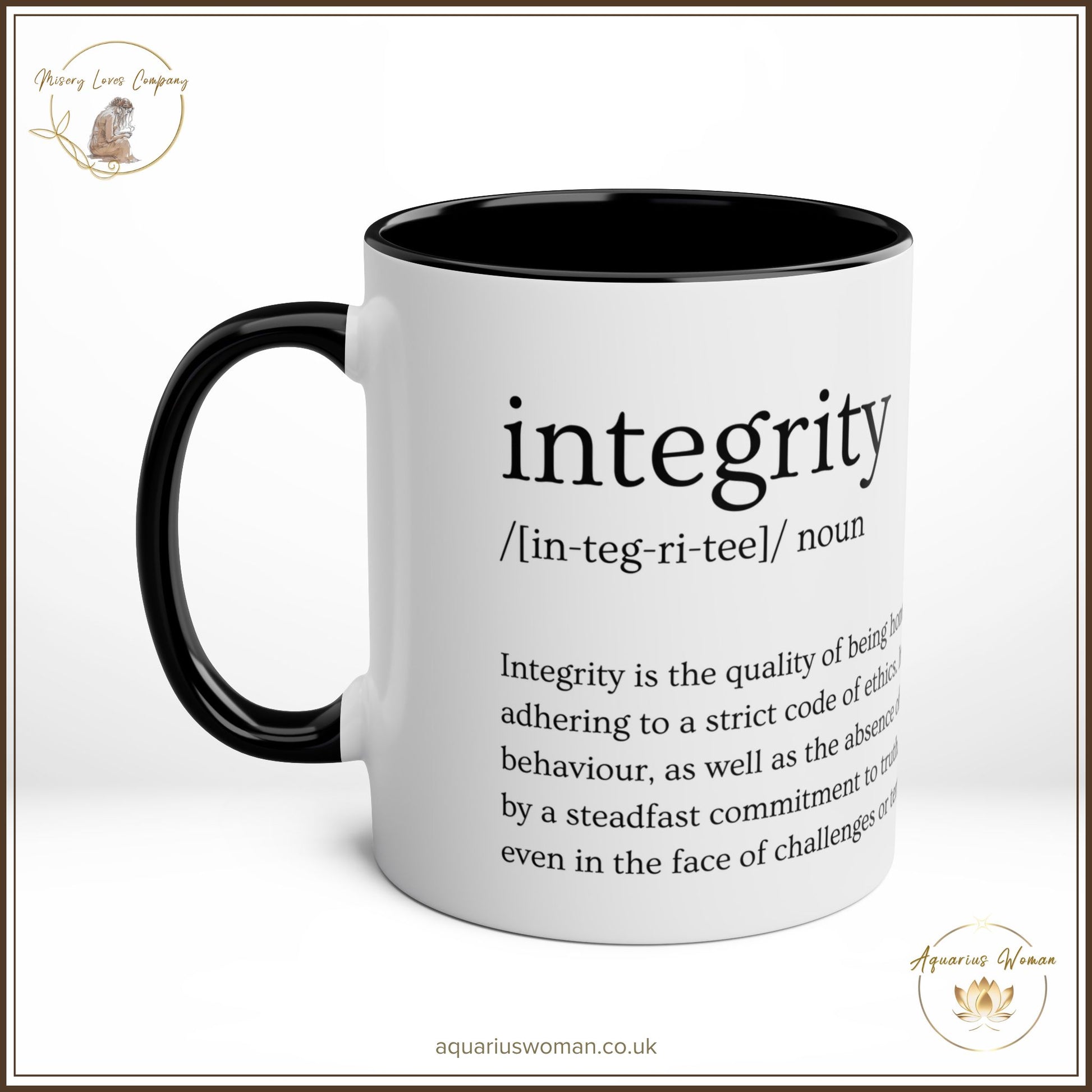 The Integrity Defined Mug draws on the transformative themes of the Misery Loves Company collection, celebrating honesty, resilience, and personal growth. The clean, contrasting colours highlight the clarity and strength that come from living with integrity.