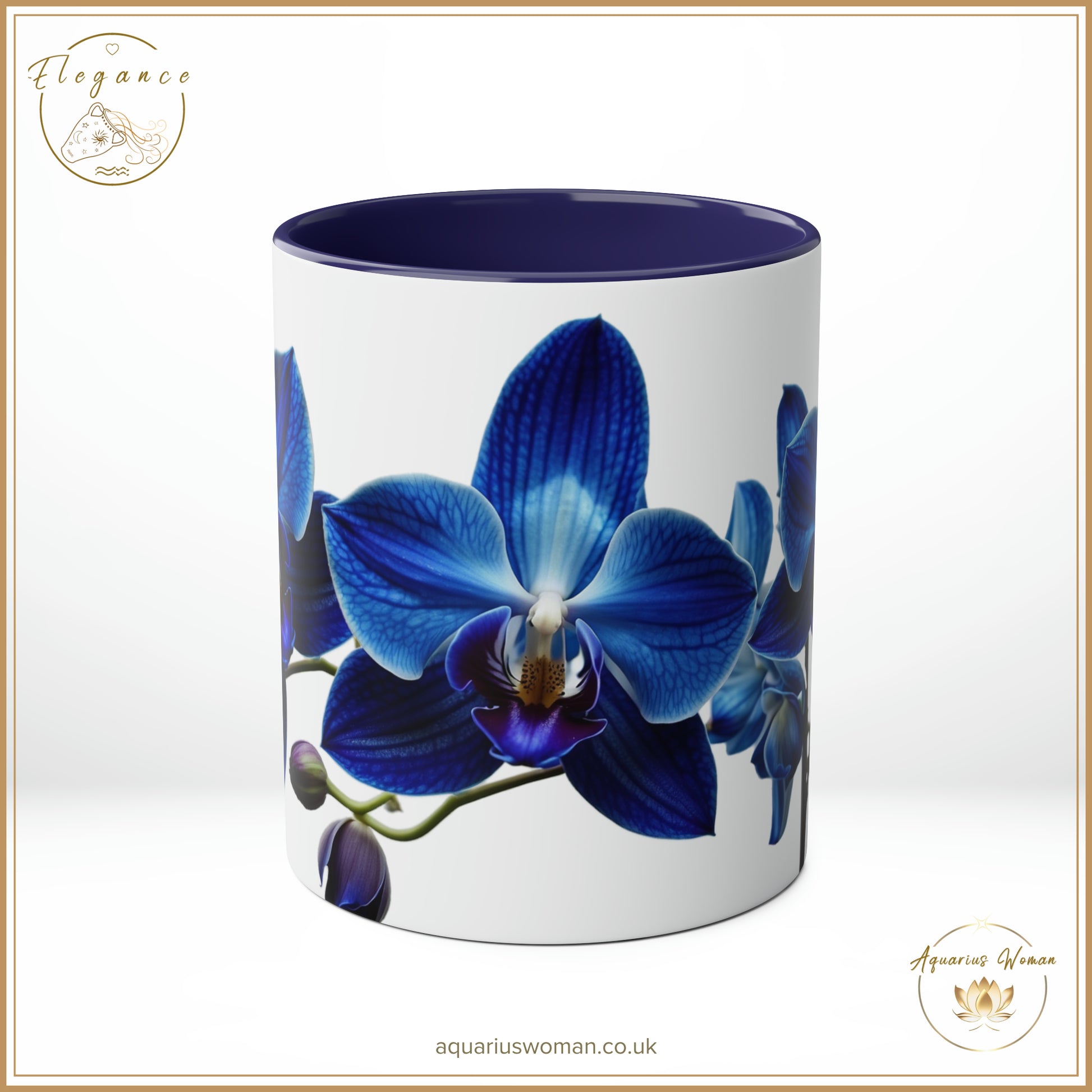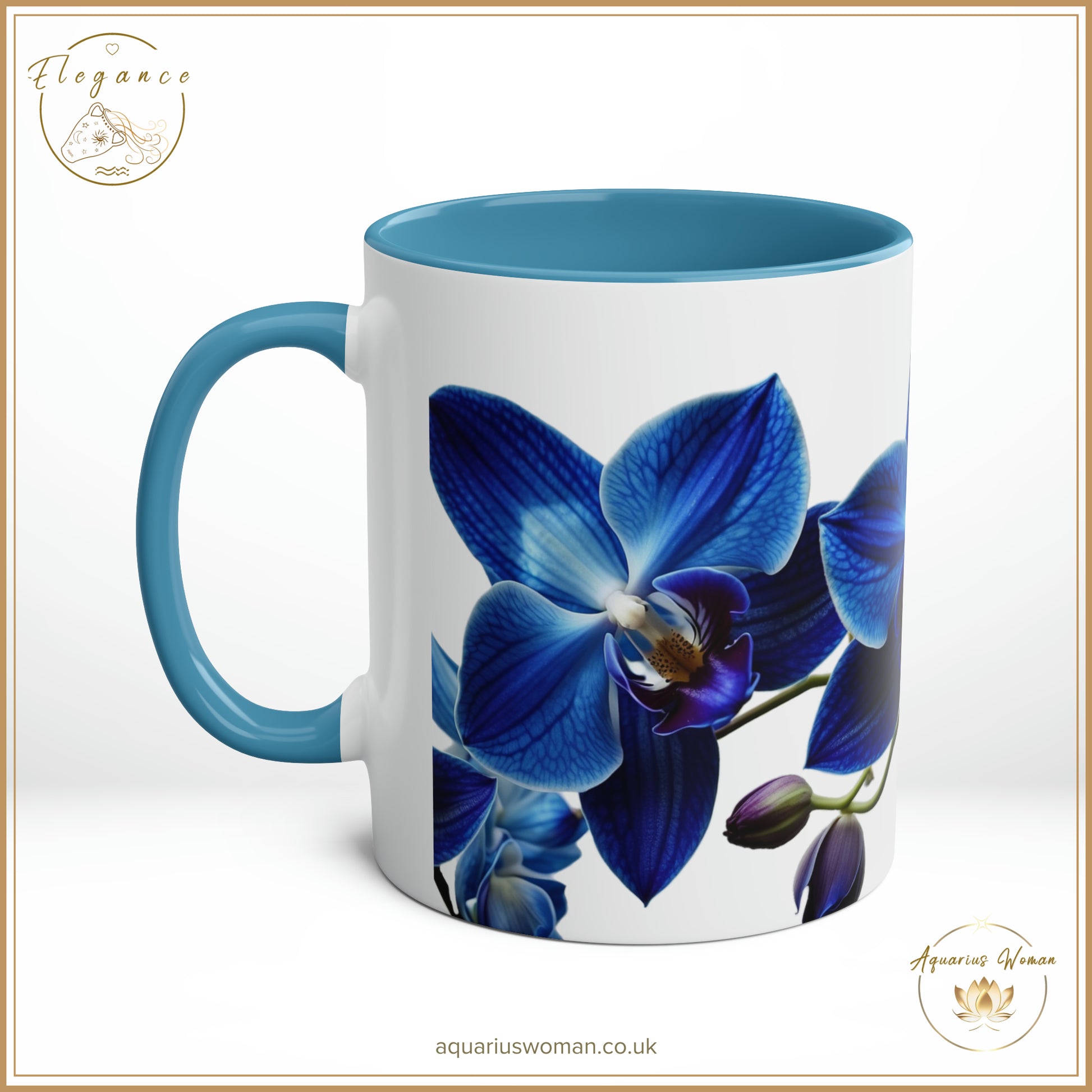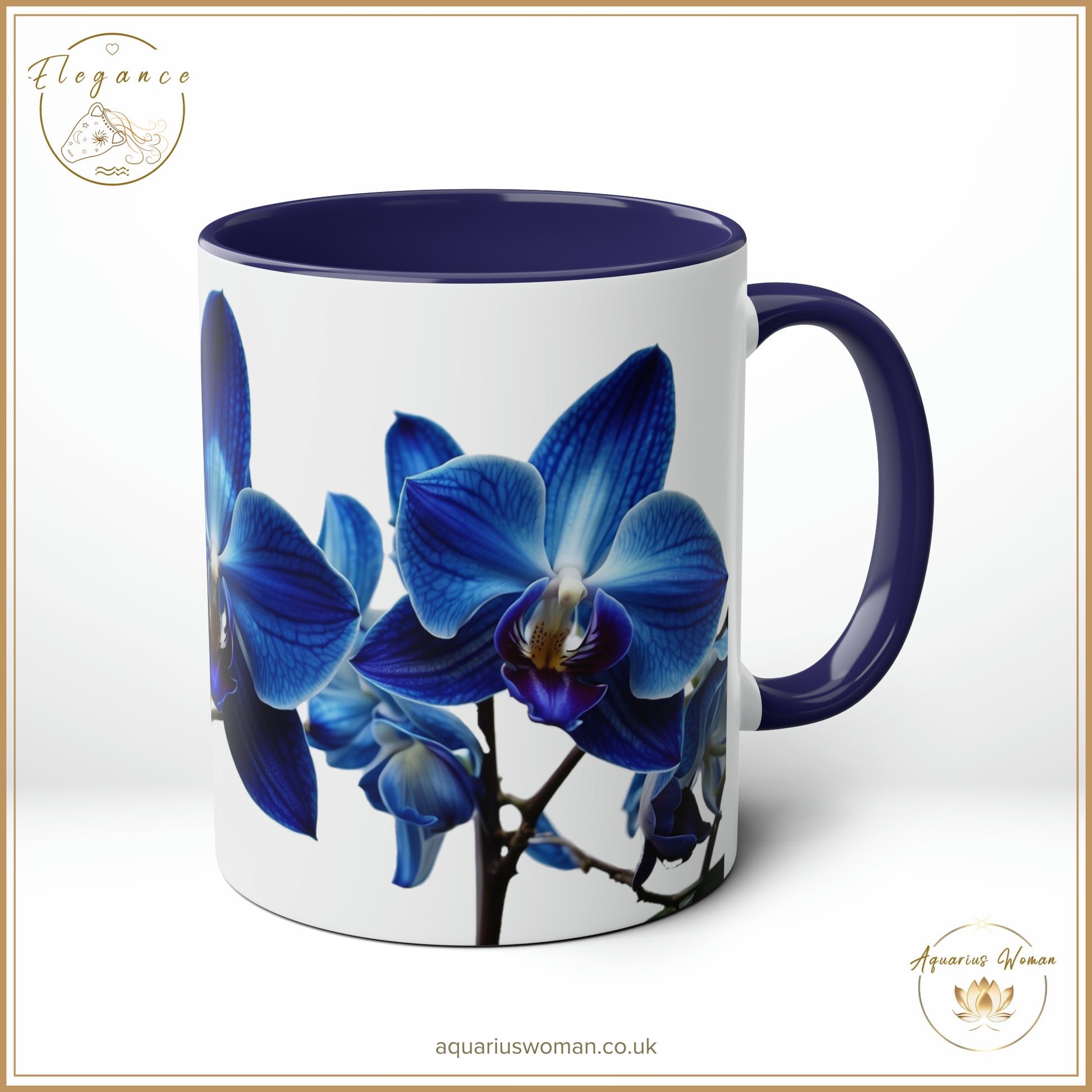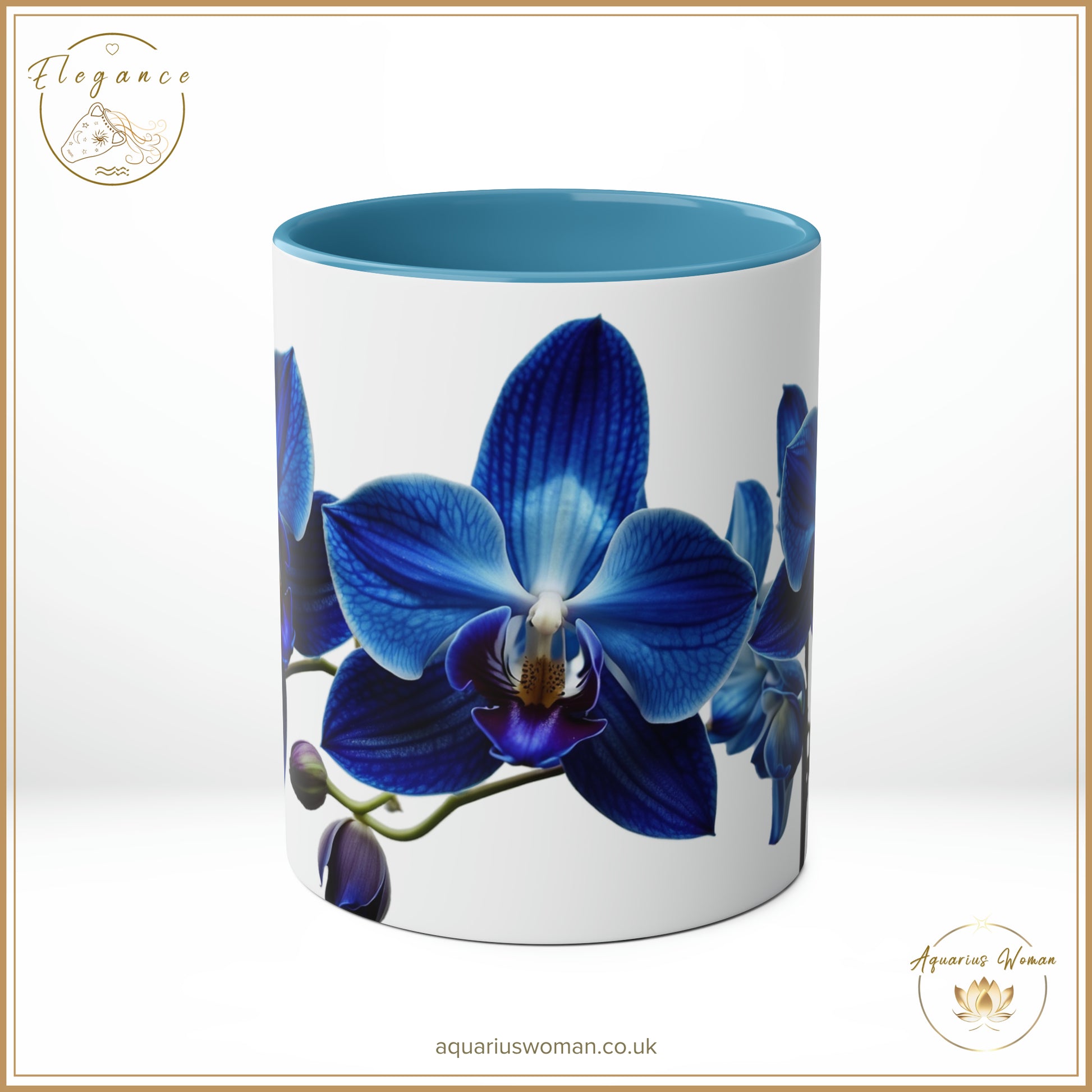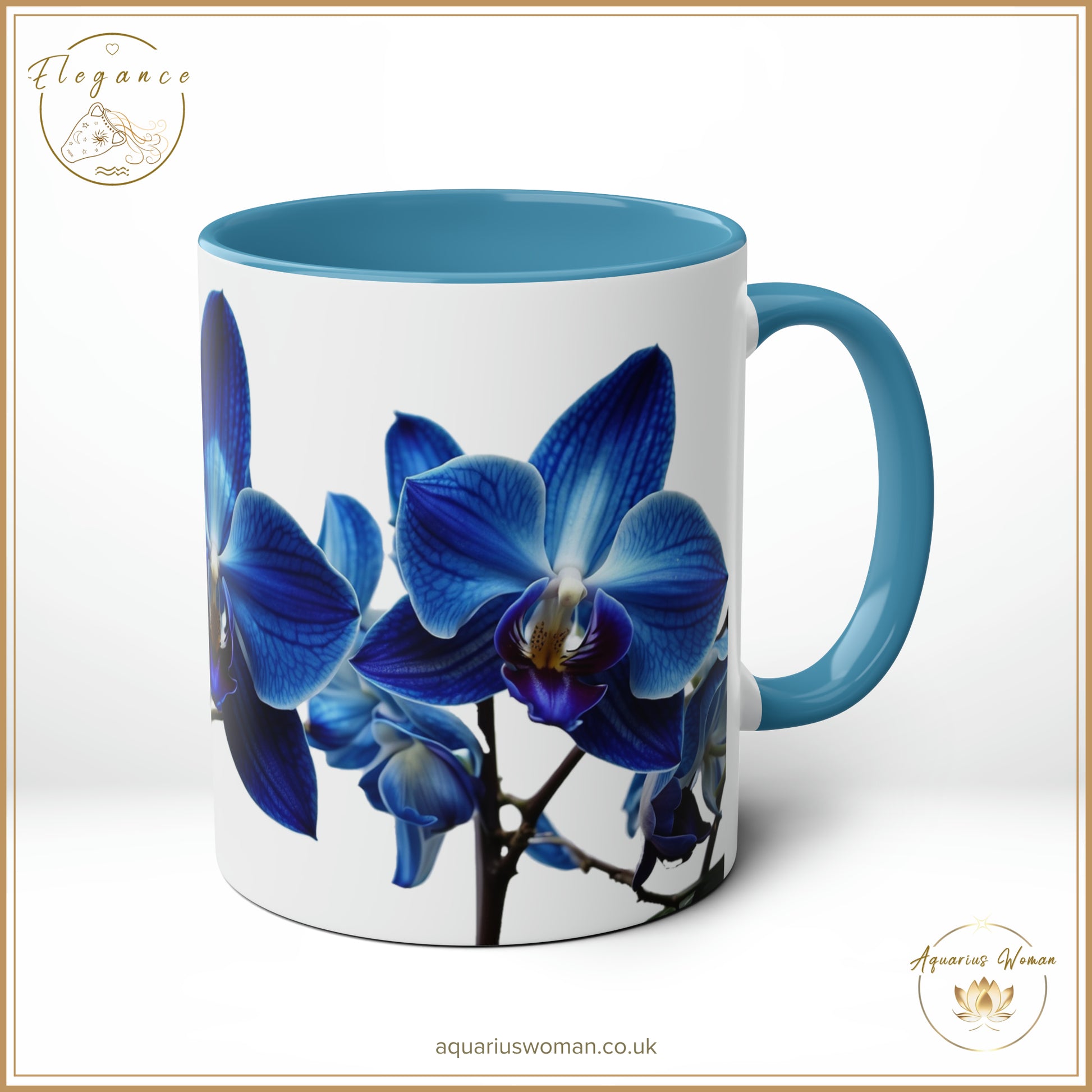 Immerse yourself in the serene beauty of the Orchid Tranquillity design with our Elegance Collection Ceramic Mug from Aquarius Woman. This mug features an exquisite blue orchid design, symbolising rarity and uniqueness, making it a stunning addition to your collection. The blue orchid serves as a reminder of tranquillity and elegance, capturing the essence of refined beauty with every sip.