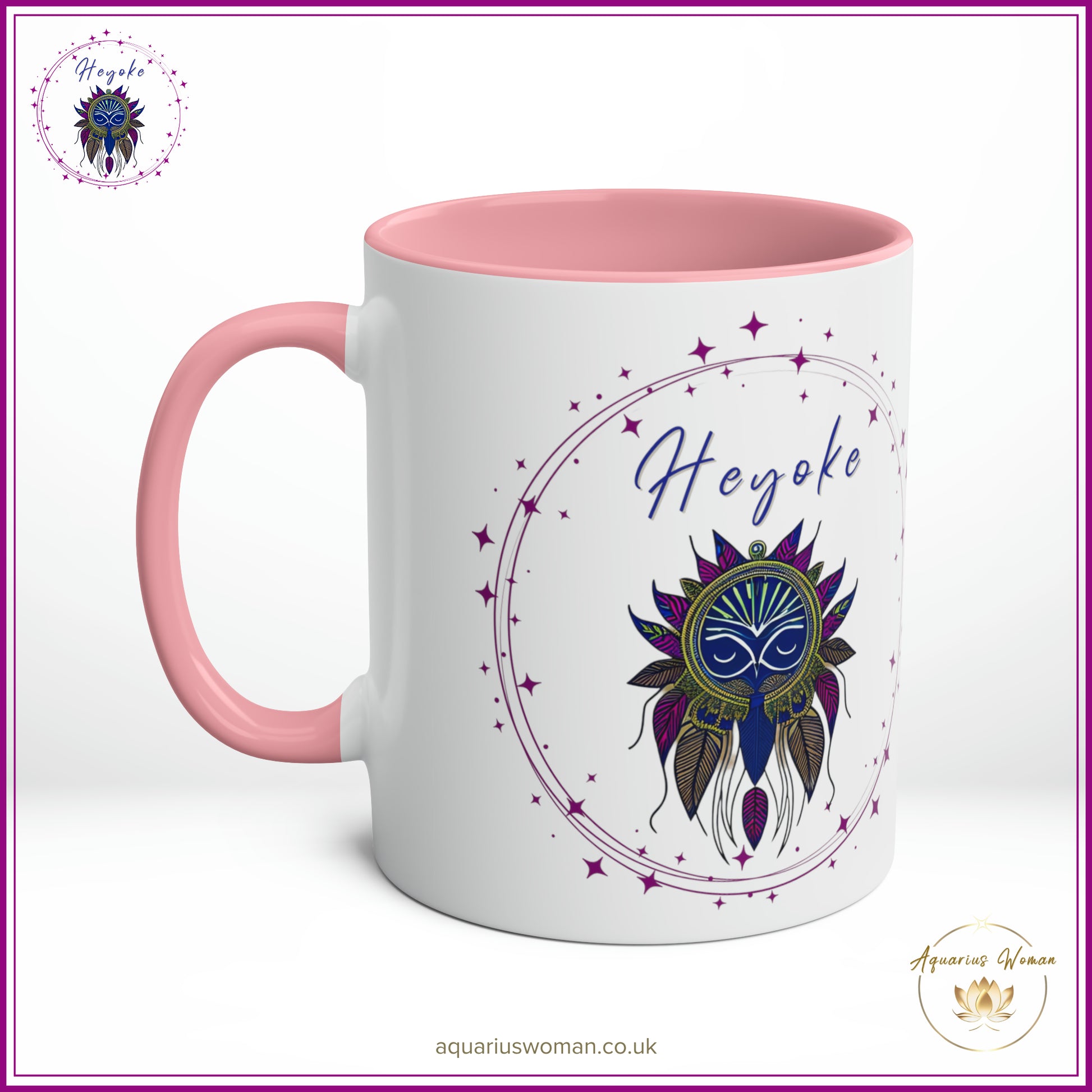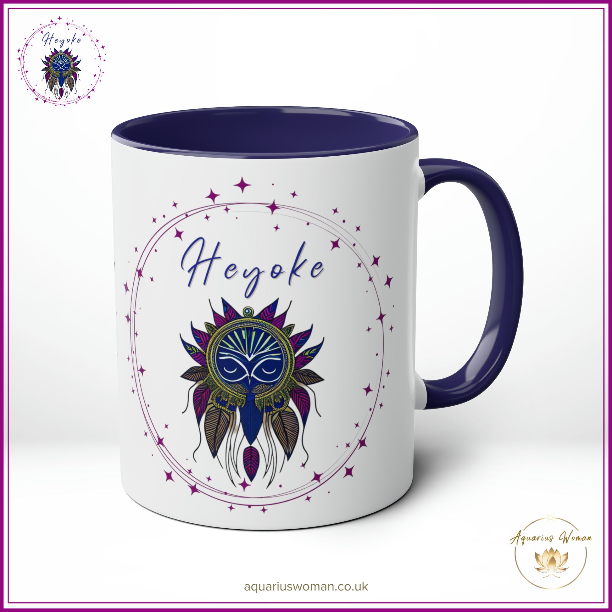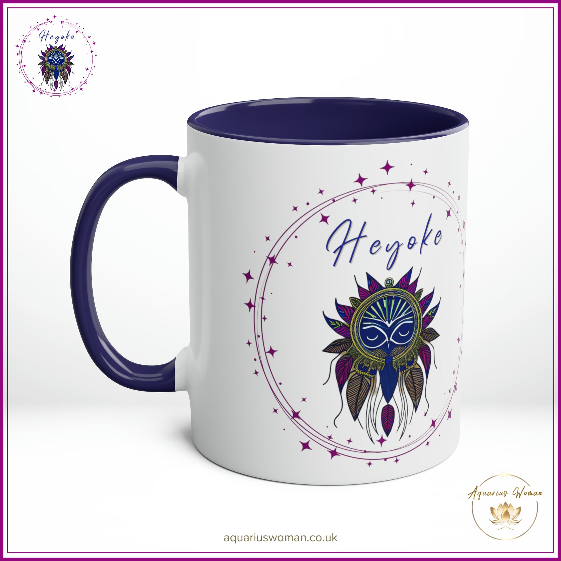 Unveil the mystery and beauty of the Heyoke Dreamcatcher Mug from the Aquarius Woman's Heyoke Collection, a celebration of wisdom, individuality, and intuitive healing. Designed with the Heyoke logo featuring an intricate dreamcatcher, this mug symbolises the journey of self-discovery, resilience, and the transformative power of walking unconventional paths.