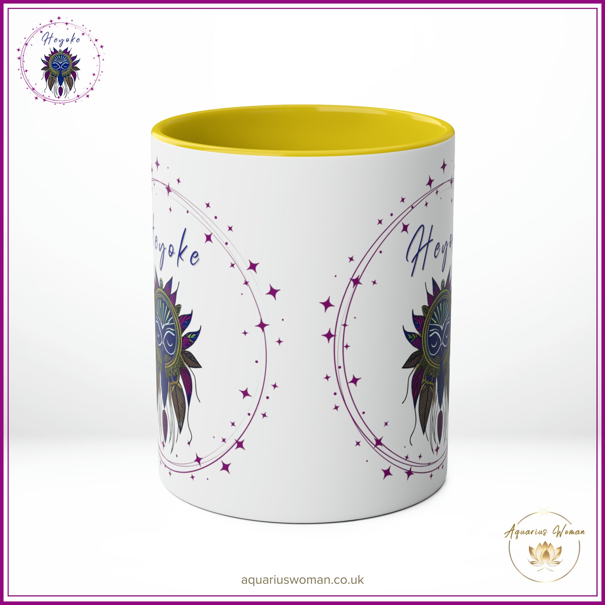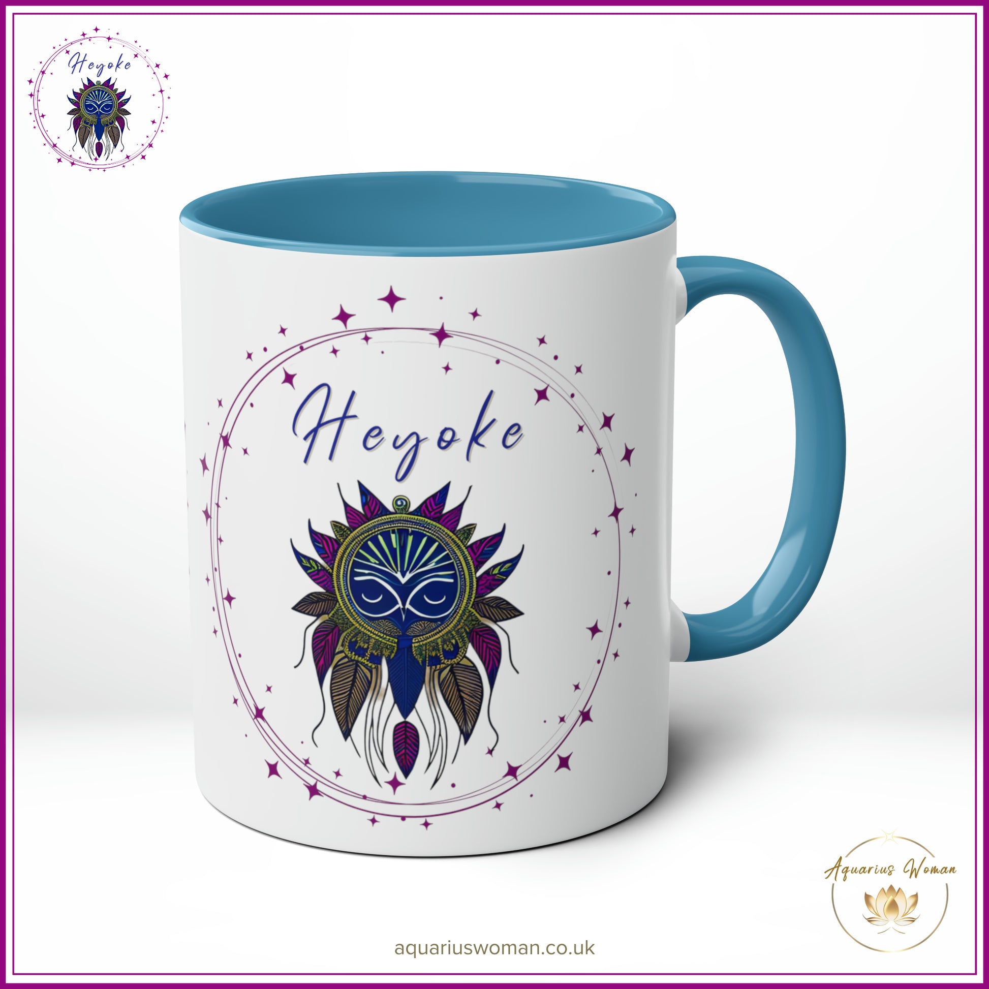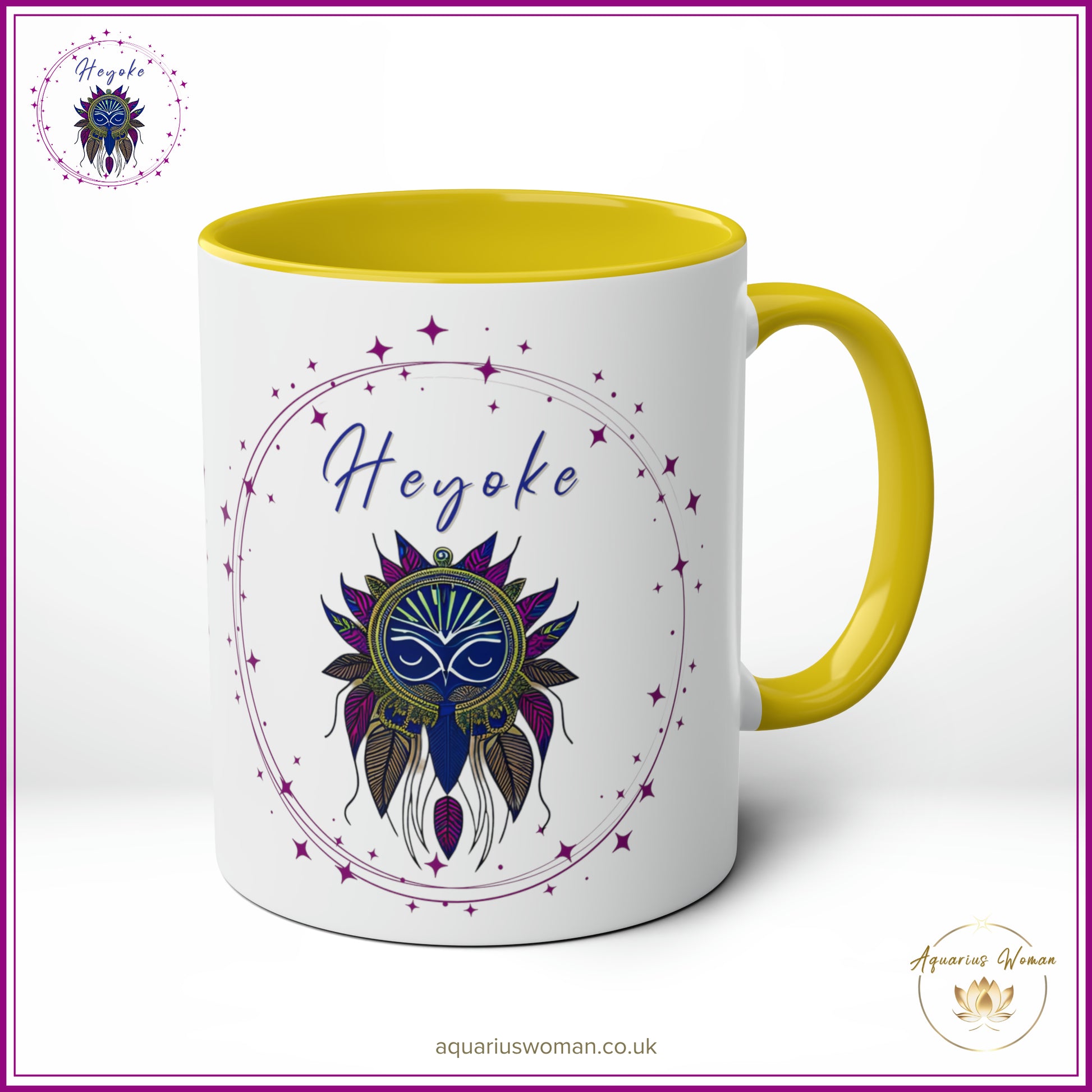Unveil the mystery and beauty of the Heyoke Dreamcatcher Mug from the Aquarius Woman's Heyoke Collection, a celebration of wisdom, individuality, and intuitive healing. Designed with the Heyoke logo featuring an intricate dreamcatcher, this mug symbolises the journey of self-discovery, resilience, and the transformative power of walking unconventional paths.
