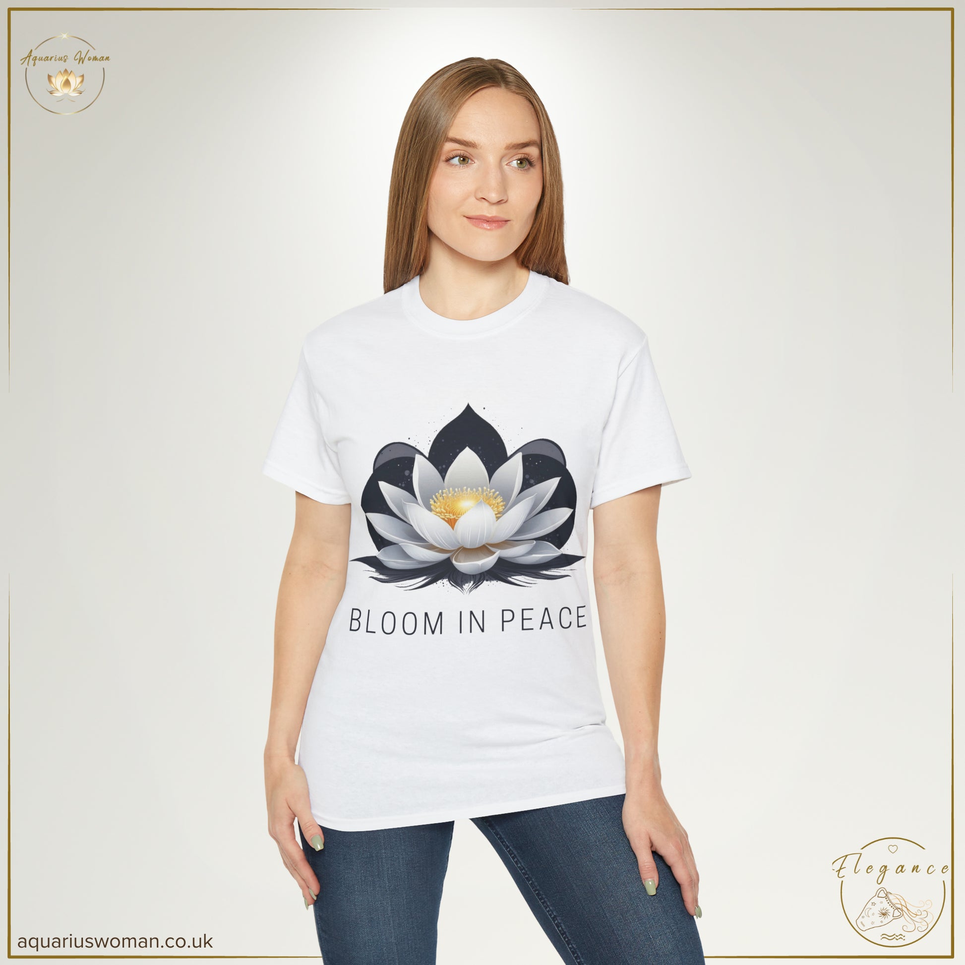 Discover the essence of serenity and timeless beauty with the Tranquil Bloom Tee, part of the Elegance Collection by Aquarius Woman. This design is an homage to individuality, self-love, and the elegance found in simplicity.