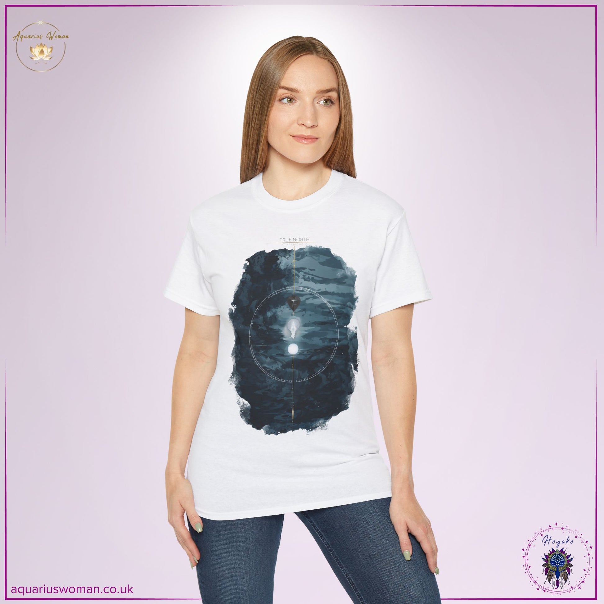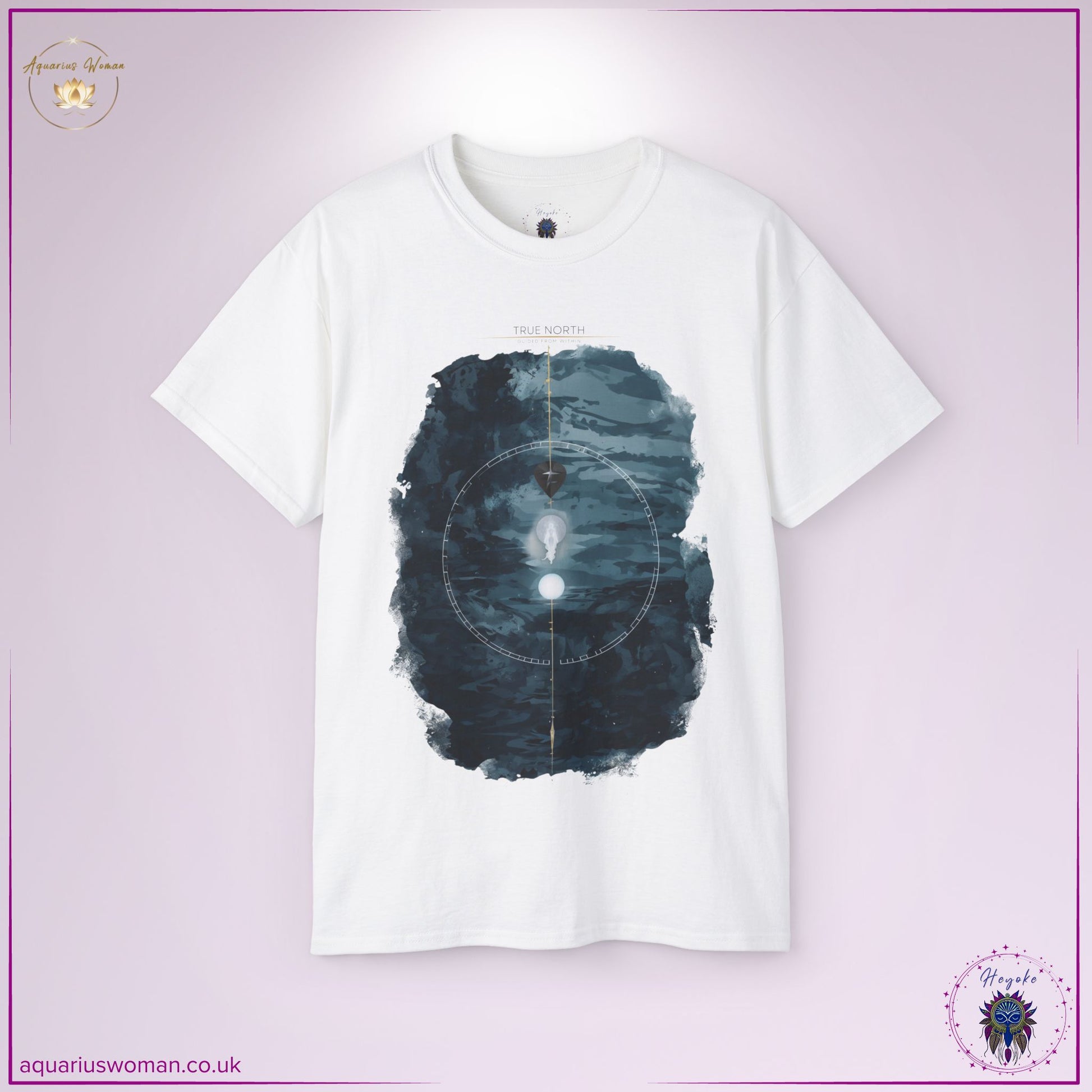 Wear your direction with quiet power and grace with the “True North – Guided From Within” Tee from the Heyoke Collection. More than a graphic tee, this piece is a visual mantra for women who move by their own inner compass.