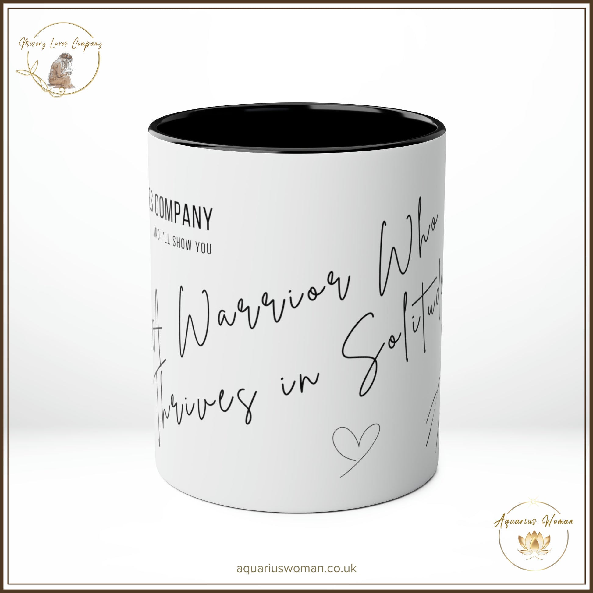 Start your day with empowerment and purpose with the Warrior of Solitude Mug from Aquarius Woman's Misery Loves Company Collection. This simple yet empowering mug isn't just drinkware, it's a powerful symbol of strength, resilience, and personal growth.