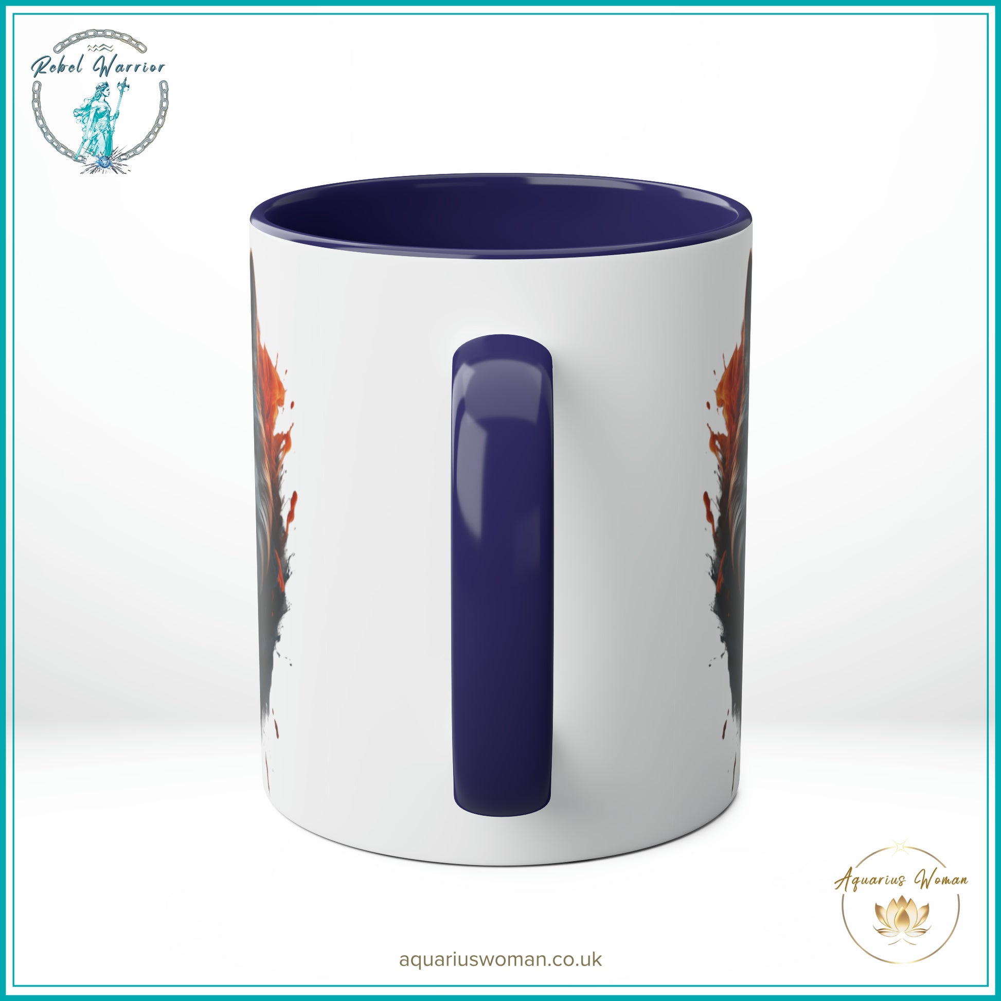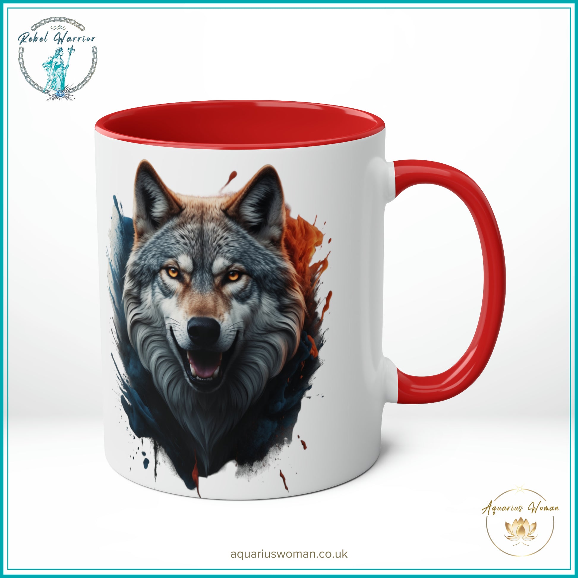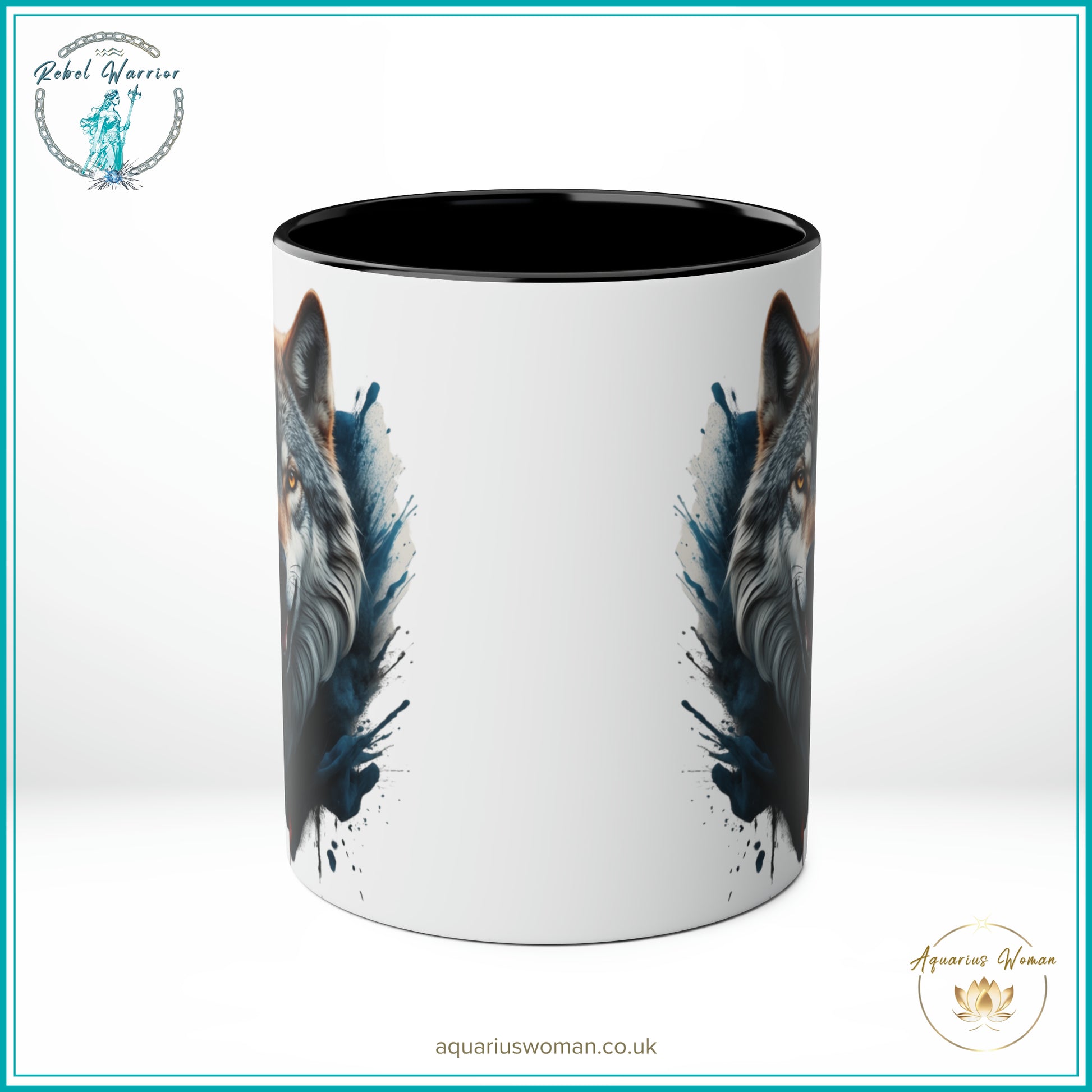 Aquarius Woman Rebel Warrior "Wild Spirit Wolf" Mug – Bold Teal & Amber Design